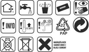 Bijeli cement, kreč, karbonatni pijesak do 2,0 mm, pigmenti, aditivi.
